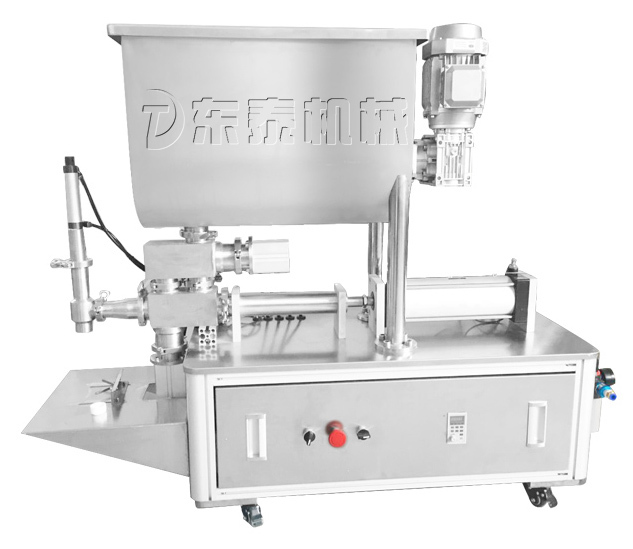 DTG-500-DV型半自動(dòng)辣椒醬灌裝機(jī)結(jié)構(gòu)合理、機(jī)型小巧、性能可靠、定量準(zhǔn)確、操作方便,動(dòng)力部分采用氣動(dòng)結(jié)構(gòu),均采用國內(nèi)知名氣動(dòng)元件。物料接觸部分均采用304不銹鋼材料制成,符合GMP認(rèn)證的要求。采用加大攪拌料斗,料斗容積可達(dá)120L,立的全鋁外殼銅芯攪拌電機(jī),變頻調(diào)速,可適應(yīng)于各種醬料的灌裝??筛鶕?jù)用戶需要在機(jī)型范圍內(nèi)任意調(diào)節(jié)灌裝量及灌裝速度,灌裝精度高。灌裝悶頭采用防滴漏裝置。