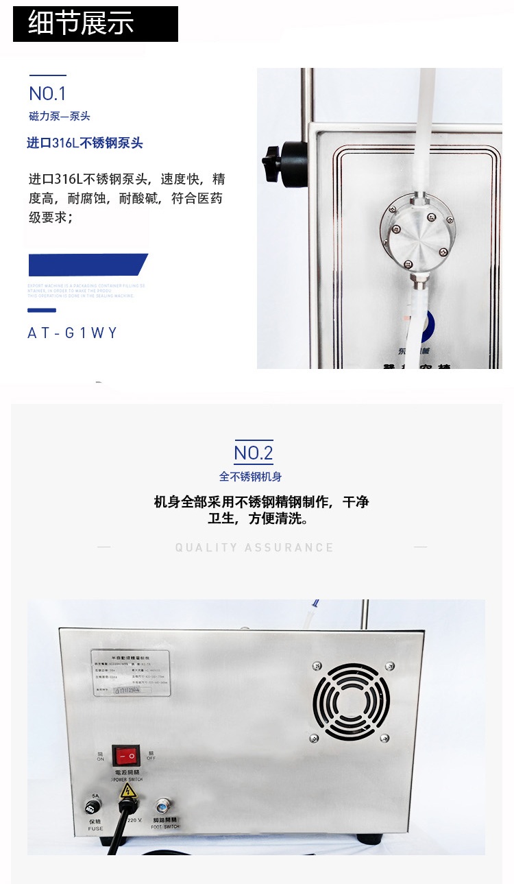 磁力泵式半自動(dòng)液體灌裝機(jī)細(xì)節(jié)展示圖: